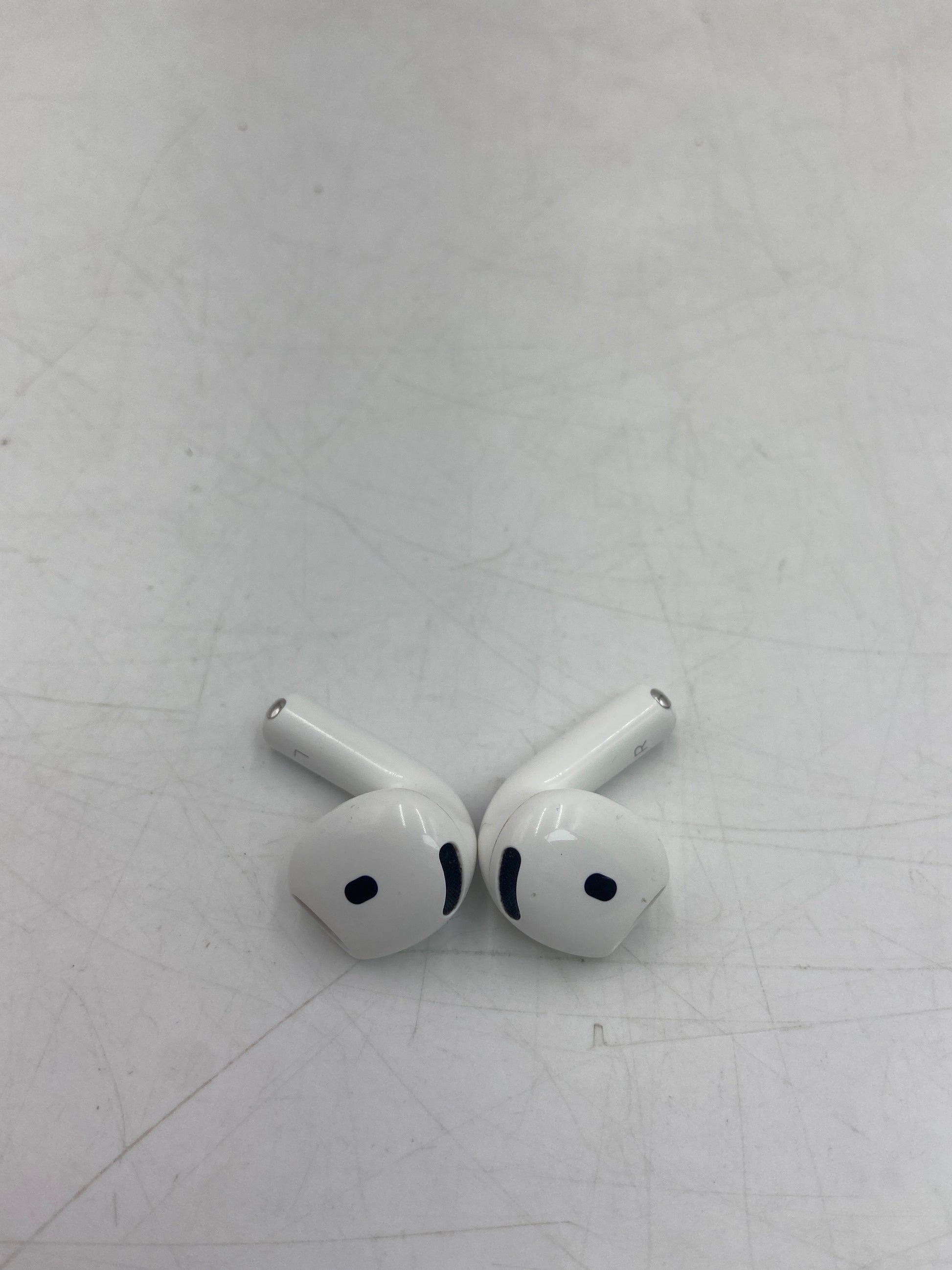 The earbud case is in good condition with no damage and minimal wear. The earbuds are in good condition and clean. There are some minor scratches / scuffs from everyday use.