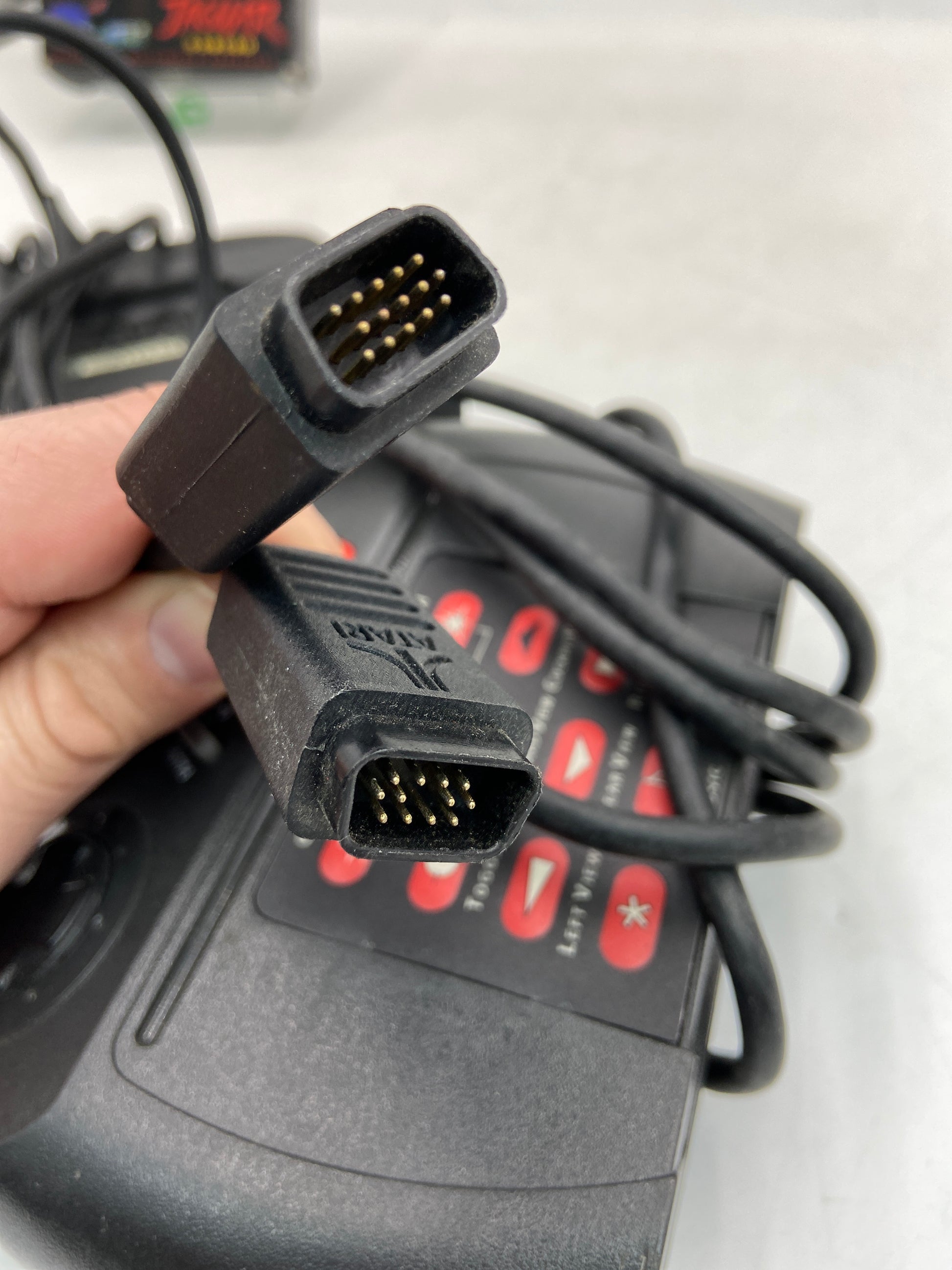 This device is in fully working, used condition. It has been tested to ensure all aspects are working as they should. The game console works, and powers on. The Jaguar logo appears on the TV screen when powered on. However, the game was not being read when testing the game. Cybermorph game may not be fully functional, and may need some restoration. When testing the console, the screen was a slightly fuzzy at times, may need a New AV cord.
