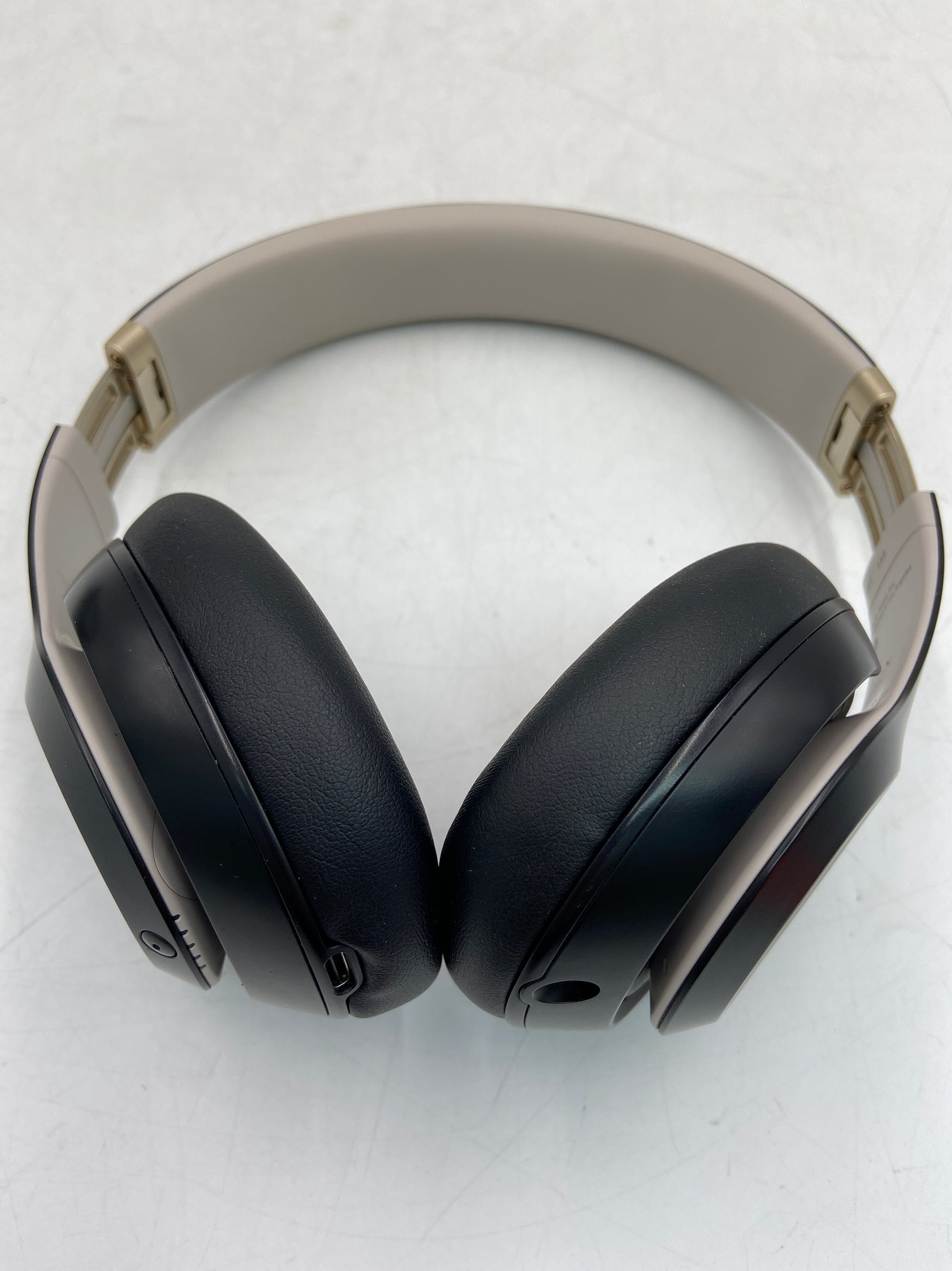 The ear cup housing is in good condition with no damage and minimal wear. The ear cup cushions are in good condition, clean and have no odor. The headband is in good condition with little to no wear. The buttons have no signs of heavy use or wear. The hinges are in good condition with minor signs of use. The ports are clean and in good condition. The earbuds are in good condition and clean. The wire is in good condition with little signs of wear.