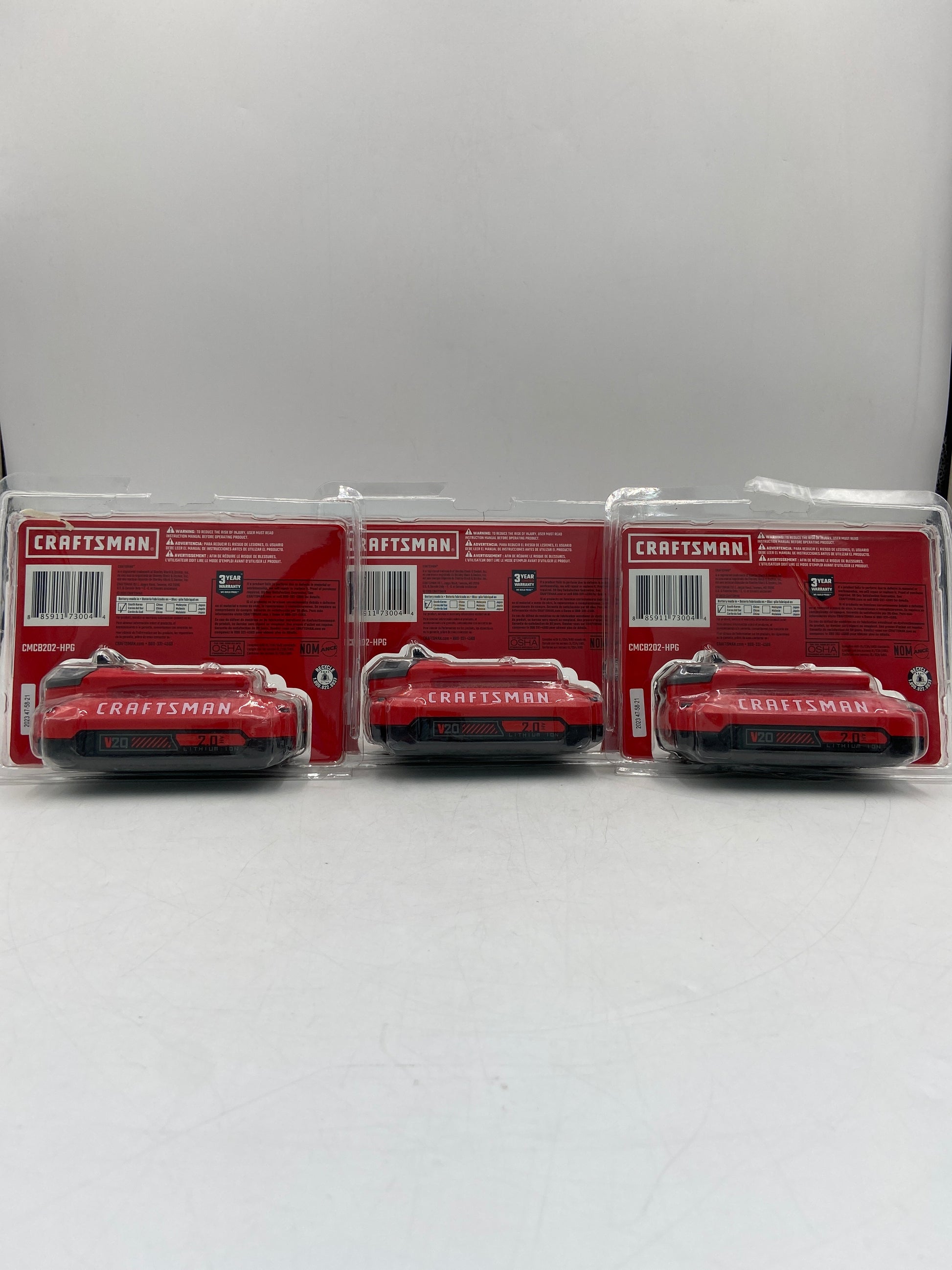 New Craftsman Lot of 3 2.0 Ah Lithium Ion Battery Rechargeable Power Tool Battery CMCB202-HPG