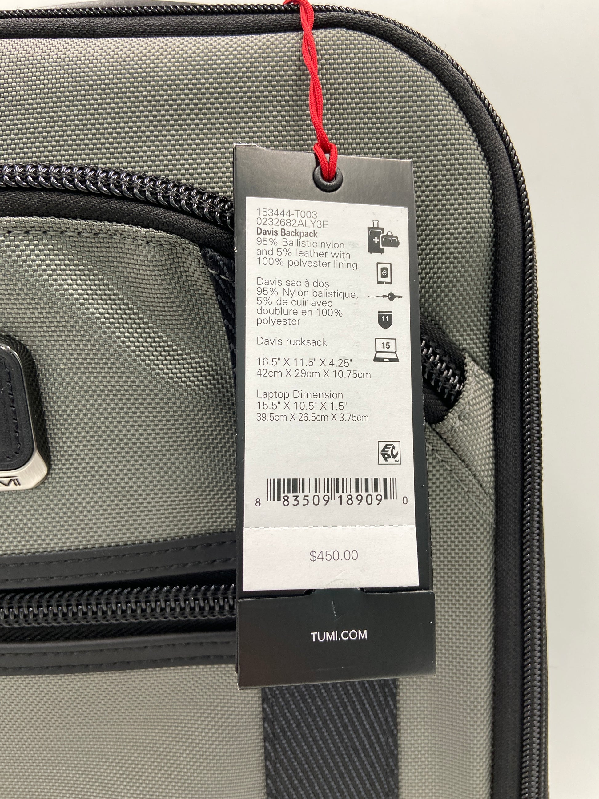New Tumi Alpha Bravo Ballistic Nylon Davis Backpack Grey Backpack 153444-T003